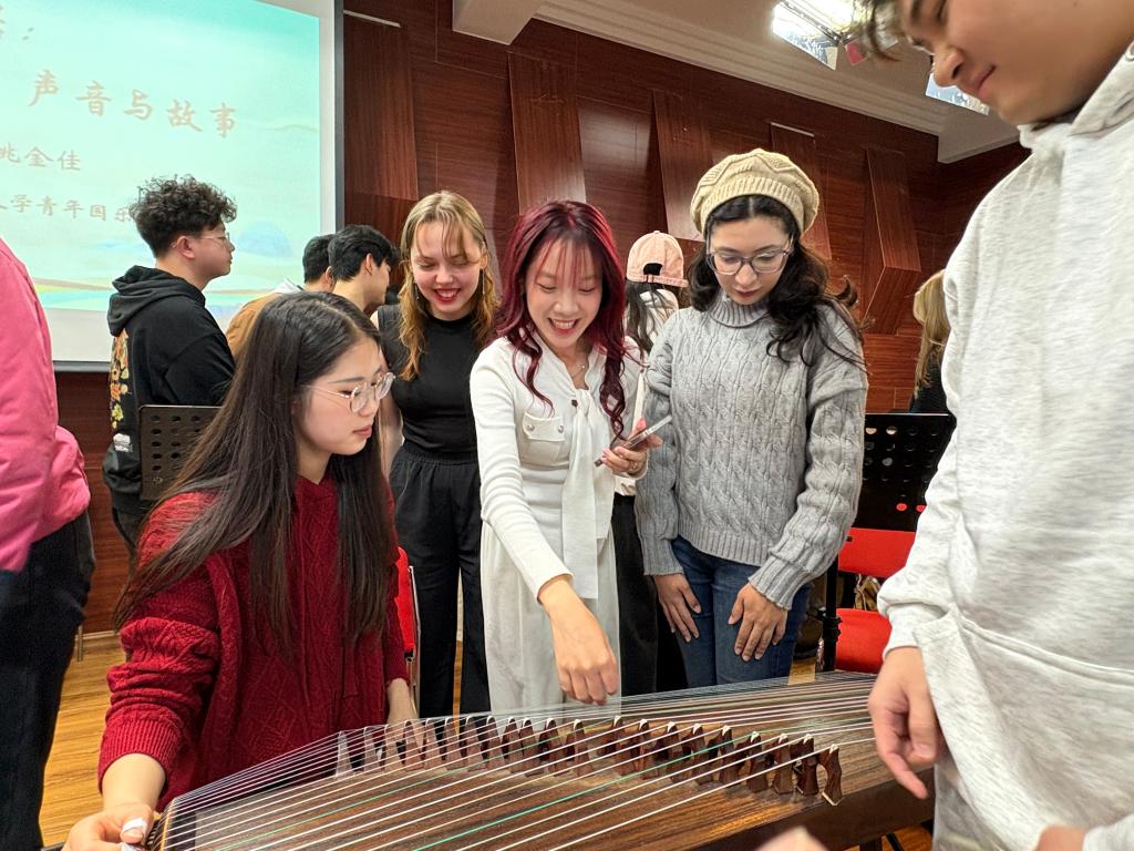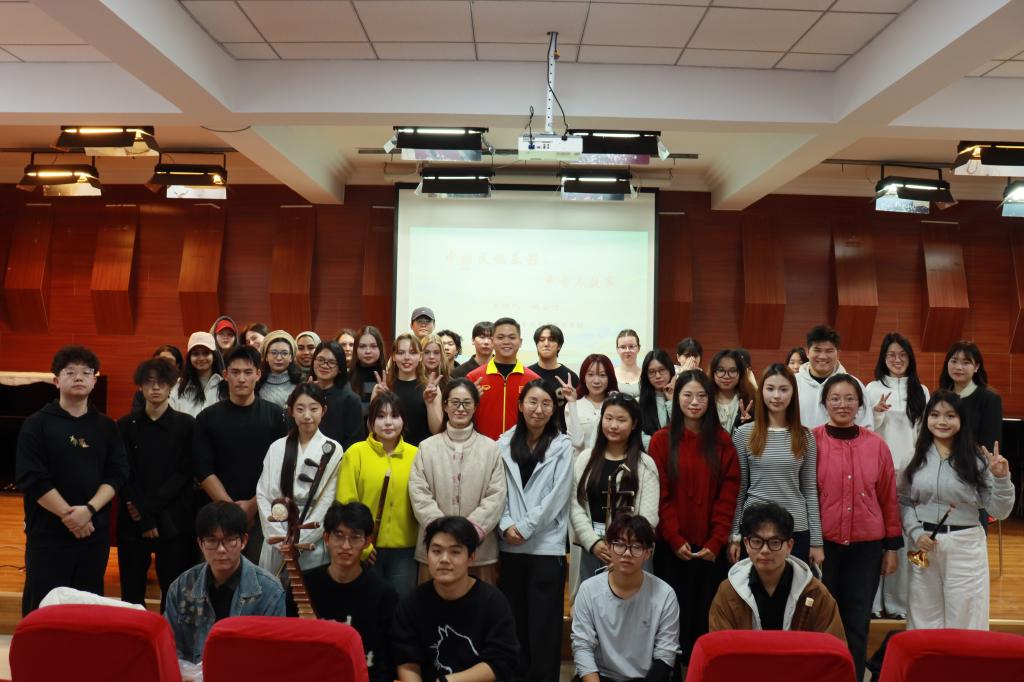 2025年11月10日,烟台大学国际教育交流学院“感知中国”实践课走进音乐与舞蹈学院,组织来华留学生开展传统民乐体验活动。音乐舞蹈学院姚金佳老师带领烟台大学青年国乐团倾情献艺,让异国学子在多元民乐声中感受中华文化魅力。