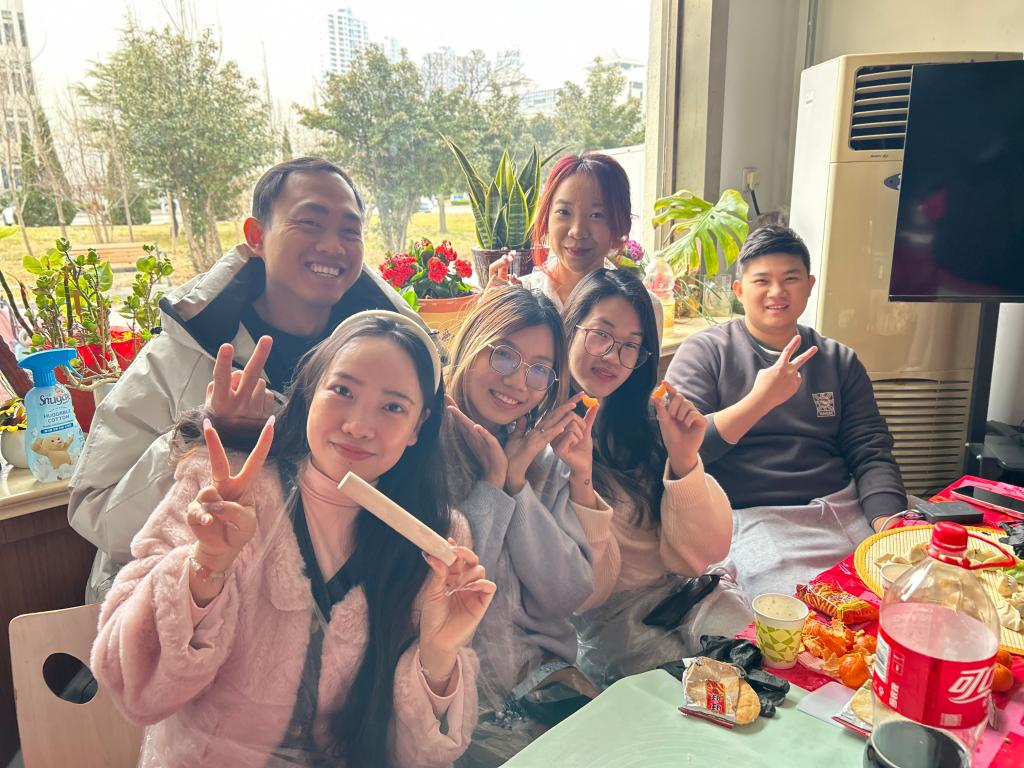 随着饺子和汤圆陆续下锅,香气四溢。大家围坐在一起,品尝亲手制作的美食,畅谈新年愿望,气氛温馨融洽。来自巴基斯坦的优萨玛同学还带来了家乡特色美食与大家分享,同学们在品尝中交流饮食文化,感受多元交流的魅力。